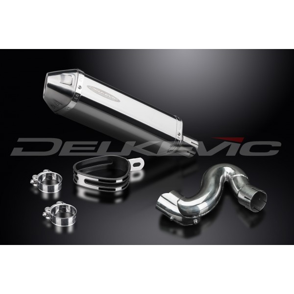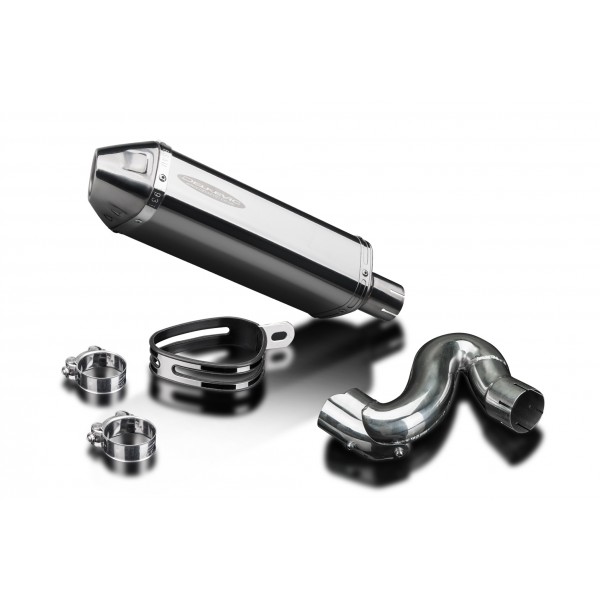 • This set includes - Delkevic silencer with a removable baffle, link pipe, strap, and clamps.