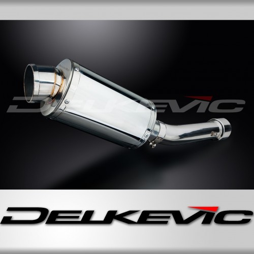 • This set includes - Delkevic silencer with a removable baffle, link pipe, clamp, and strap.