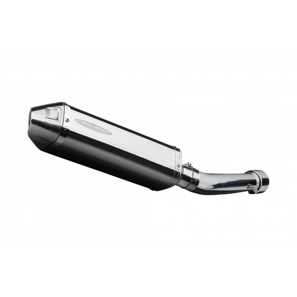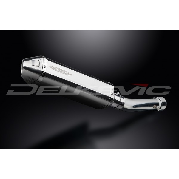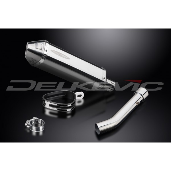 • This set includes - Delkevic silencer with a removable baffle, link pipe, clamp, and strap.