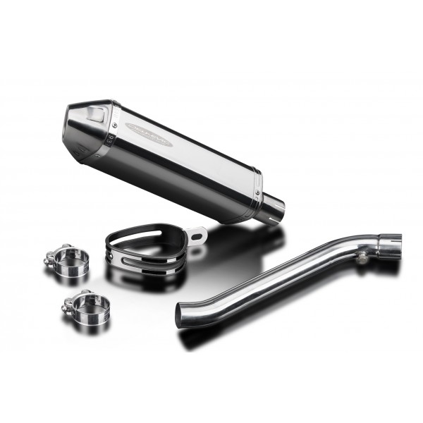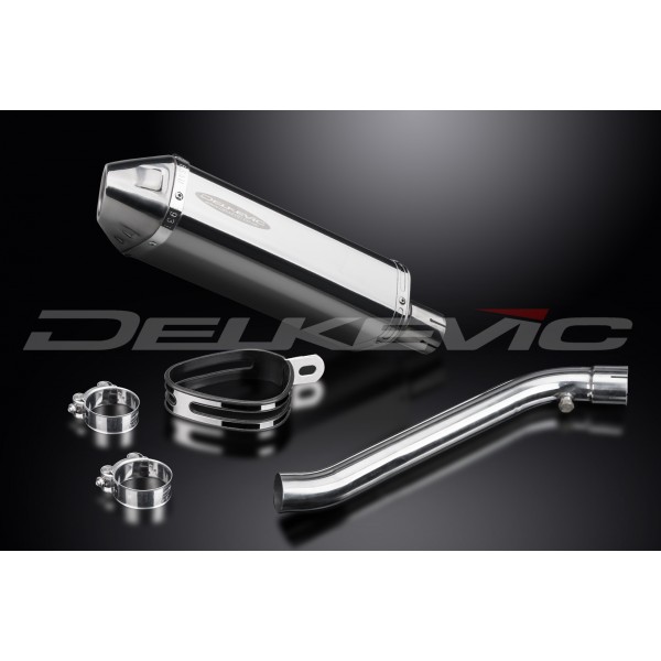 • This set includes - Delkevic silencer with a removable baffle, link pipe, silencer strap, bracket, clamps, and fixings.