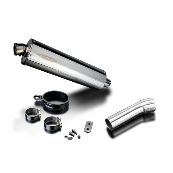 • This set includes - Delkevic silencer with a removable baffle, link pipe, silencer strap, bracket, clamps, and fixings.