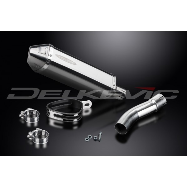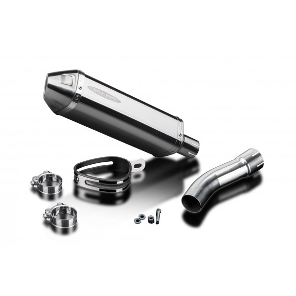 • This set includes - Delkevic silencer with a removable baffle, link pipe, strap, clamps, and fixings.