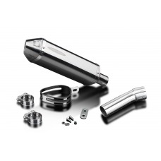 • This set includes - Delkevic silencer with a removable baffle, link pipe, silencer strap, bracket, clamps, and fixings.
