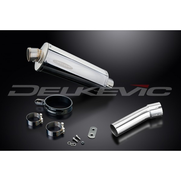 • This set includes - Delkevic silencer with a removable baffle, link pipe, silencer strap, bracket, clamps, and fixings.