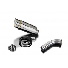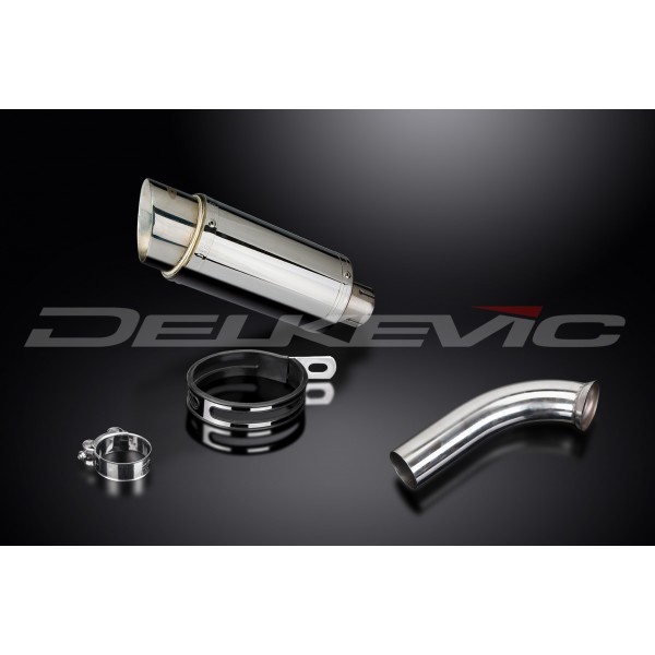 • This set includes - Delkevic silencer with a removable baffle, link pipe, clamps, and strap.