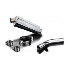 • This set includes - Delkevic silencer with a removable baffle, link pipe, strap, clamps, hex head bolt, cap screw, washers, lock nuts, and offset drop bracket.