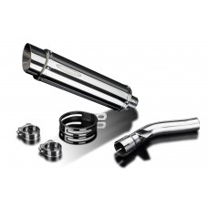 • This set includes - Delkevic silencer with a removable baffle, link pipe, strap, clamps, hex head bolt, cap screw, washers, lock nuts, and offset drop bracket.