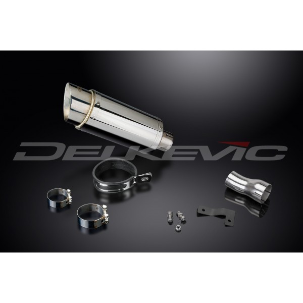 • This set includes - Delkevic silencer with a removable baffle, link pipe, strap, clamps, nyloc nuts, cap screws, washers, and bracket.
