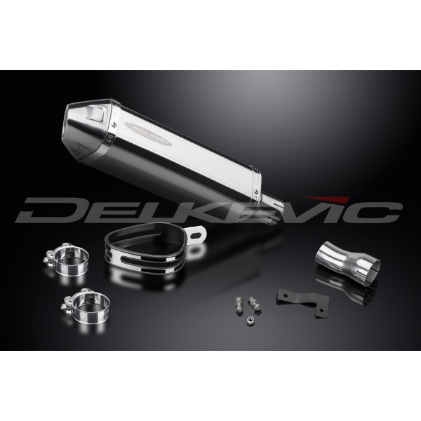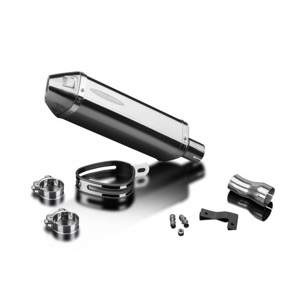 - This set includes - Delkevic silencer with a removable baffle, link pipe, strap, clamps, nyloc nuts, cap screws, washers, and bracket.
