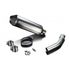 • This set includes - Delkevic silencer with a removable baffle, link pipe, clamps, and strap.