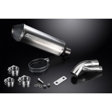 • This set includes - Delkevic silencer with a removable baffle, link pipe, strap, clamps, nyloc nuts, cap screws, washers, and bracket.