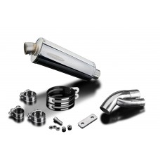 • This set includes - Delkevic silencer with a removable baffle, link pipe, strap, clamps, nyloc nuts, cap screws, washers, and bracket.