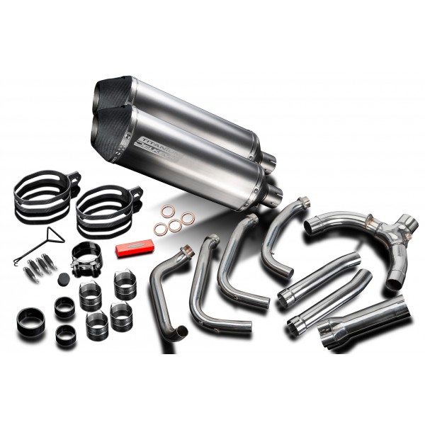 • This set includes - Delkevic down pipes, collector box, link pipes, silencers with removable baffles, straps, gaskets, clamps, and spring hooks.