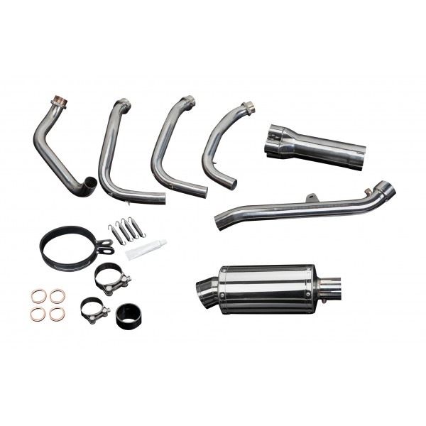 • This set includes - Delkevic down pipes, collector box, link pipe, silencer with a removable baffle, strap, clamps, gaskets, and spring hooks.