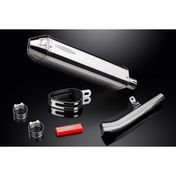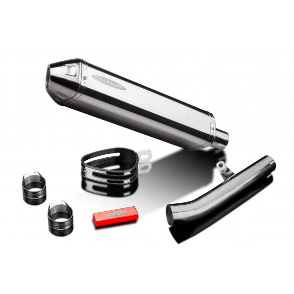 • This set includes - Delkevic silencer with a removable baffle, link pipe, strap, and clamps.