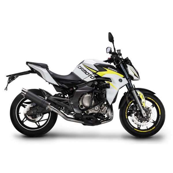 Tags: cfmoto, 650nk, 2016-2023, complete, exhaust, system, 350mm, round, carbon, fibre, silencer, COM26J4