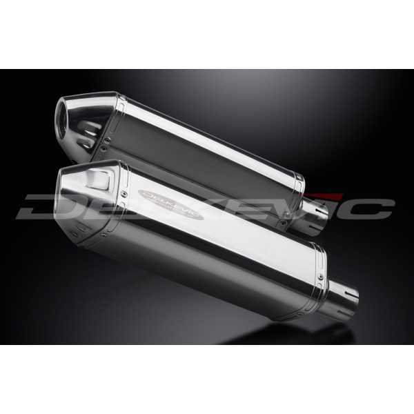 Delkevic Motorcycle 320mm Tri-Oval Stainless Exhaust Silencer End Can with Strap