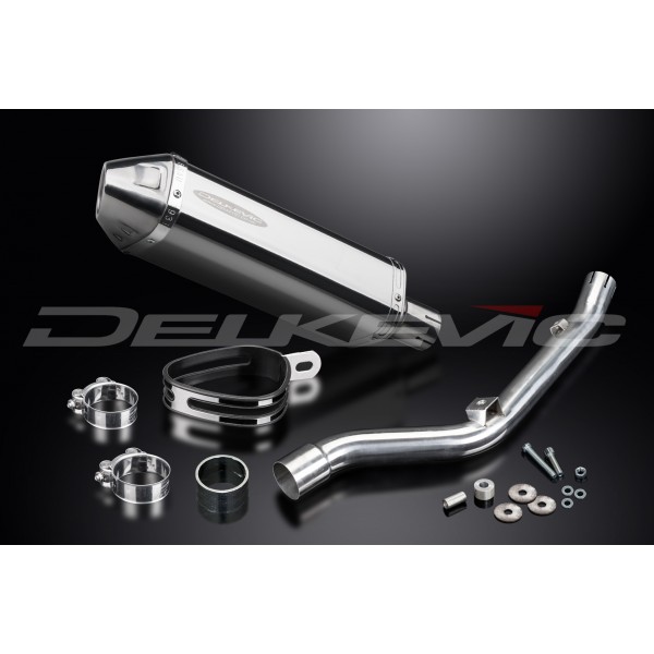 • This set includes - Delkevic silencer with a removable baffle, link pipe, strap, clamps, gasket, washers, spacers, cap screws, and nyloc nut.