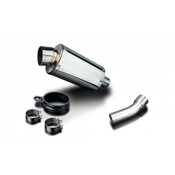 • This set includes - Delkevic silencer with a removable baffle, link pipe, strap, and clamps.