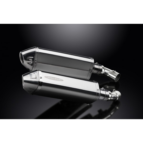 • This set includes - Delkevic silencers with removable baffles, link pipes, silencer straps, brackets, clamps, and fixings.