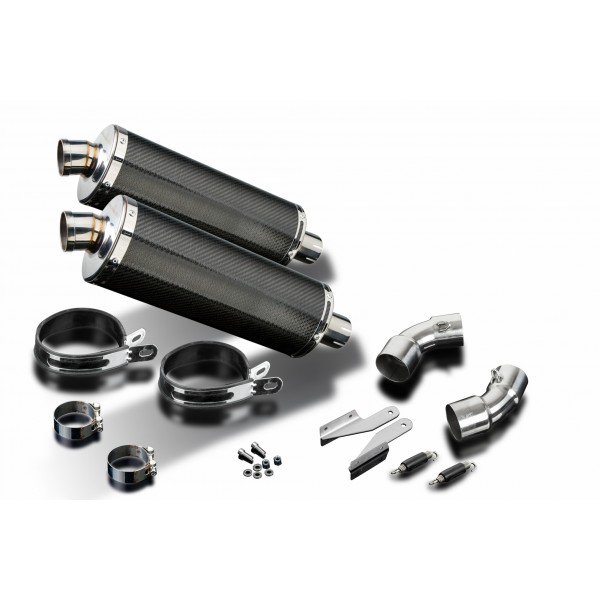 • This set includes - Delkevic silencers with removable baffles, link pipes, silencer straps, brackets, clamps, and fixings.