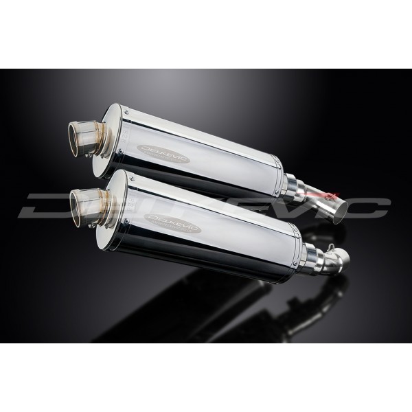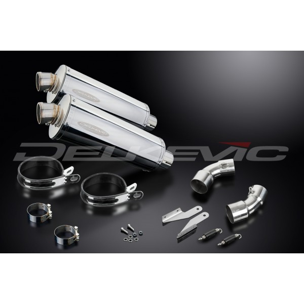 • This set includes - Delkevic silencers with removable baffles, link pipes, silencer straps, brackets, clamps, and fixings.