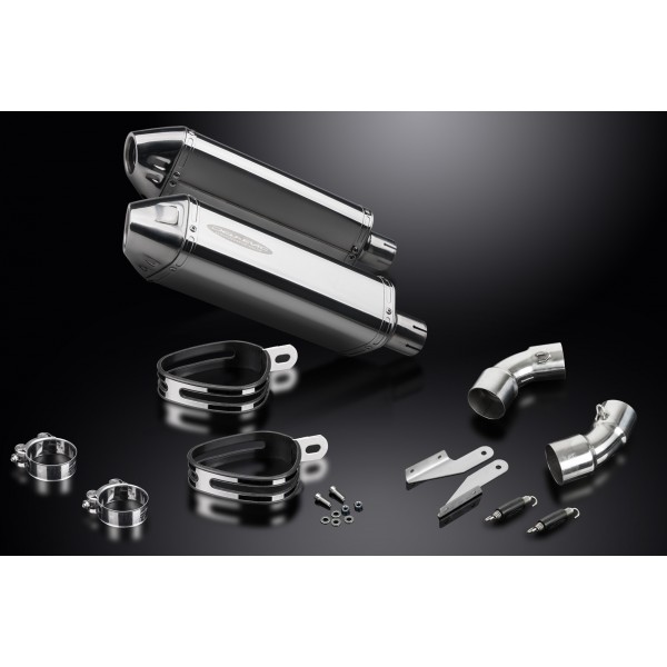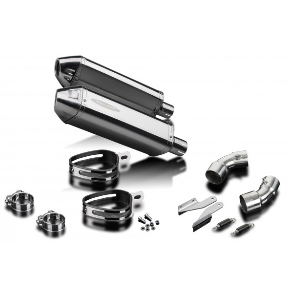 • This set includes - Delkevic silencers with removable baffles, link pipes, silencer straps, brackets, clamps, and fixings.