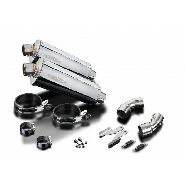 • This set includes - Delkevic silencers with removable baffles, link pipes, silencer straps, brackets, clamps, and fixings.