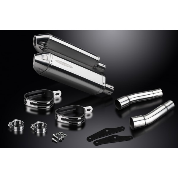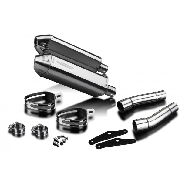 • This set includes - Delkevic silencers with removable baffles, link pipes, silencer straps, brackets, clamps, and fixings.