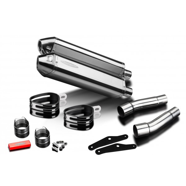 - This set includes - Delkevic silencers with removable baffles, link pipes, silencer straps, brackets, clamps, and fixings.