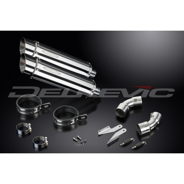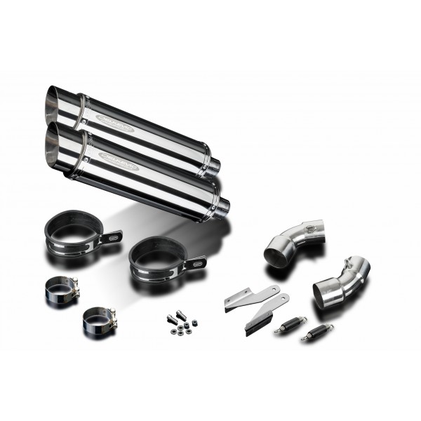 • This set includes - Delkevic silencers with removable baffles, link pipes, silencer straps, brackets, clamps, and fixings.