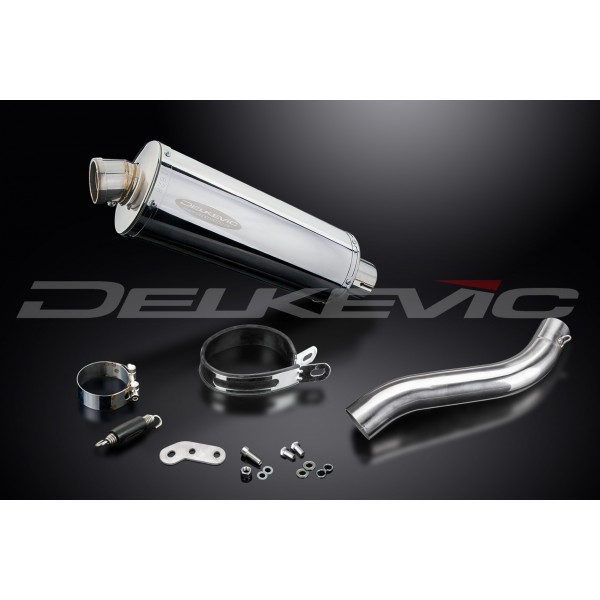 • This set includes - Delkevic Silencer, Link Pipe, Silencer Strap, Bracket, and Clamps.