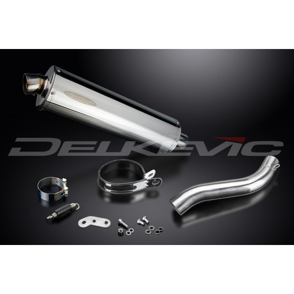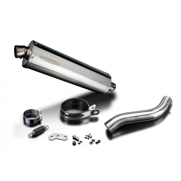 • This set includes - Delkevic Silencer, Link Pipe, Silencer Strap, Bracket, and Clamps.
