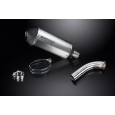• This set includes - Delkevic silencer with a removable baffle, link pipe, clamps, and strap.