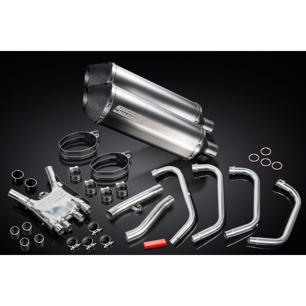 • This set includes - Delkevic down pipes, collector box, link pipes, silencers with removable baffles, straps, clamps, and fixings.