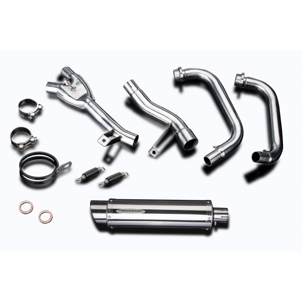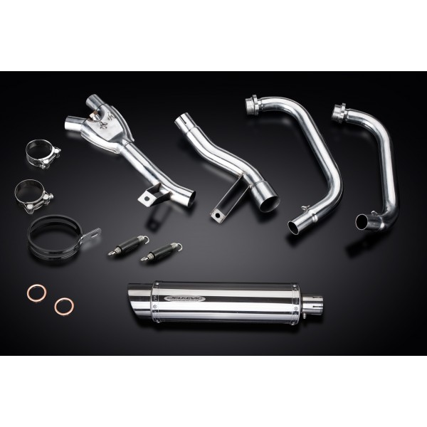 • This set includes - Delkevic down pipes, link pipe, silencer with a removable baffle, strap, clamps, and gaskets.