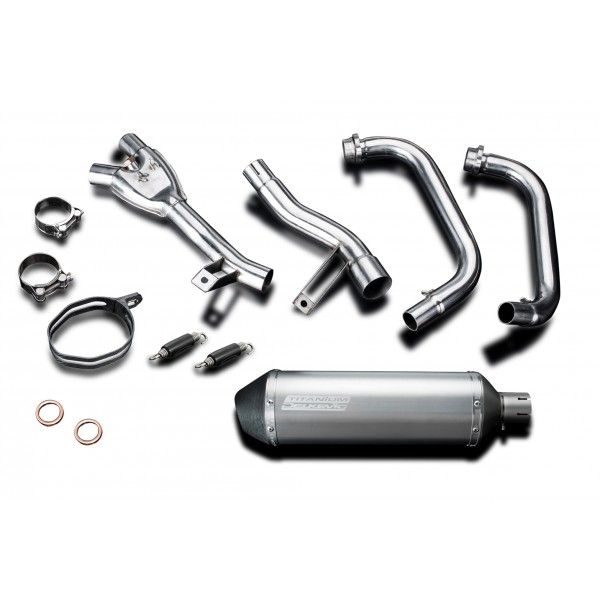 • This set includes - Delkevic down pipes, link pipe, silencer with a removable baffle, strap, clamps, and gaskets.