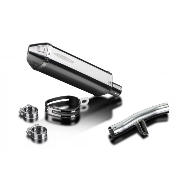 • This set includes - Delkevic silencer with a removable baffle, link pipe, strap, gasket, and clamps.