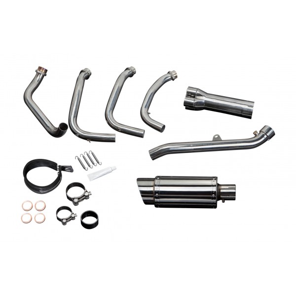 - This set includes - Delkevic down pipes, collector box, link pipe, silencer with a removable baffle, strap, clamps, gaskets, and spring hooks.