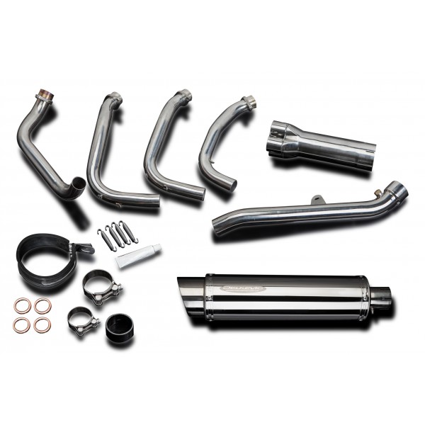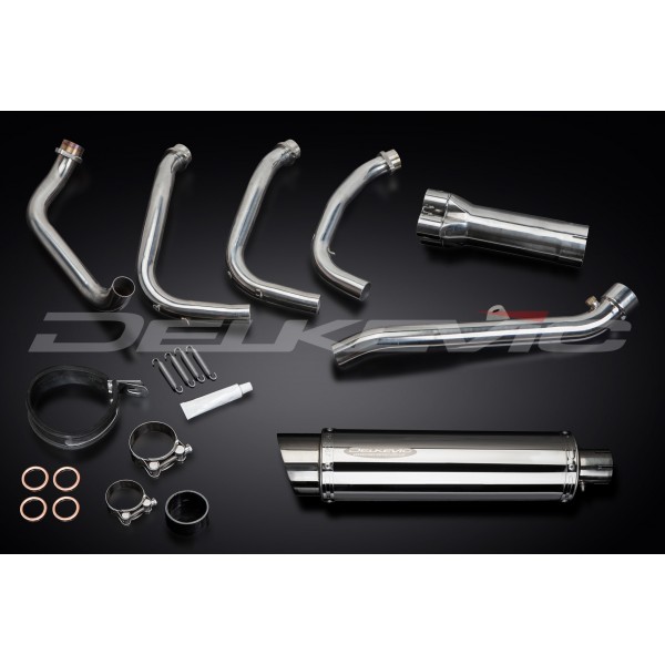 • This set includes - Delkevic down pipes, collector box, link pipe, silencer with a removable baffle, strap, clamps, gaskets, and spring hooks.