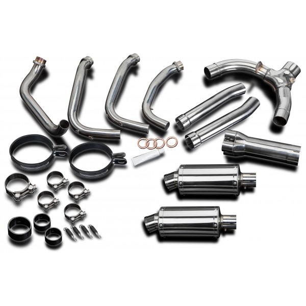 • This set includes - Delkevic down pipes, collector box, link pipes, silencers with removable baffles, straps, gaskets, clamps, and spring hooks.