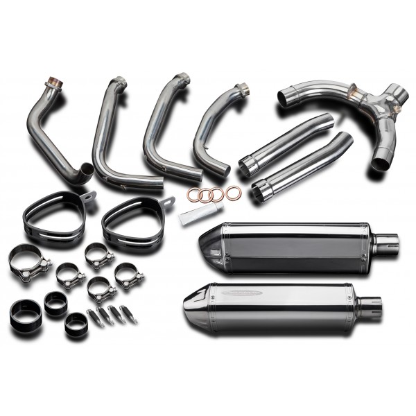 • This set includes - Delkevic down pipes, collector box, link pipes, silencers with removable baffles, straps, gaskets, clamps, and spring hooks.