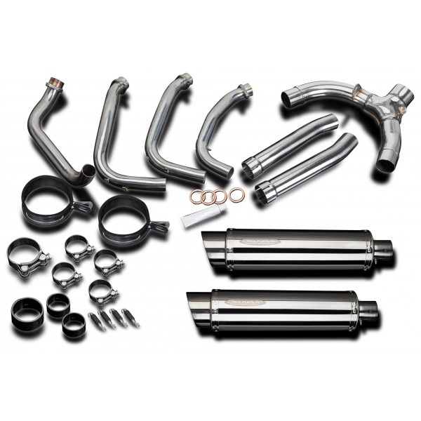 • This set includes - Delkevic down pipes, collector box, link pipes, silencers with removable baffles, straps, gaskets, clamps, and spring hooks.