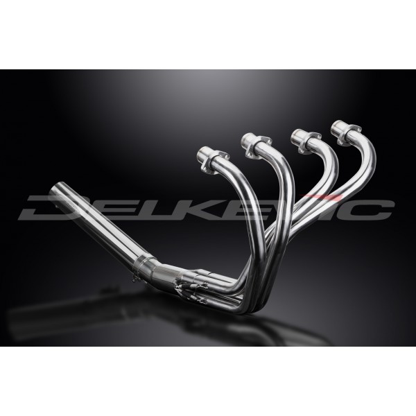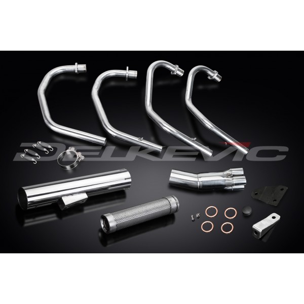 • This set includes - Delkevic down pipes, Classic style silencer with a removable baffle, collector, gaskets, brackets, stand stop rubber, clamp, and fixings.