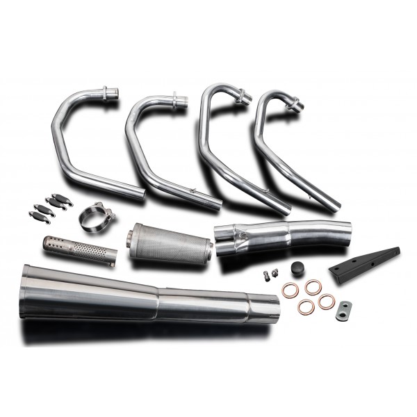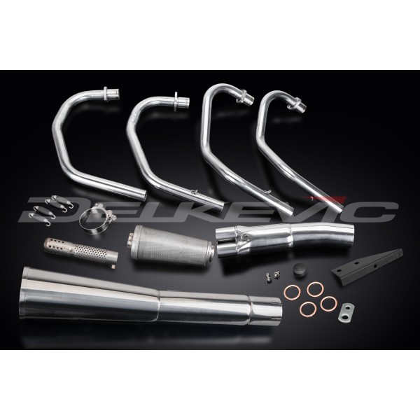 - This set includes - Delkevic down pipes, Classic style silencer with a removable baffle, collector, gaskets, brackets, stand stop rubber, clamp, and fixings.