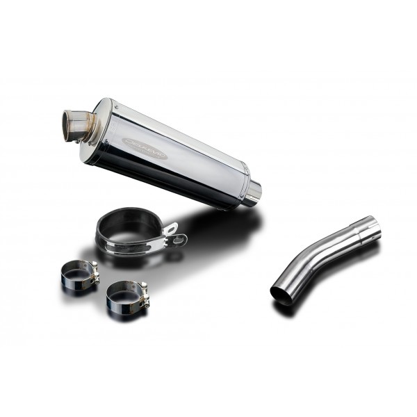 - This set includes - Delkevic silencer with a removable baffle, link pipe, strap, and clamps.