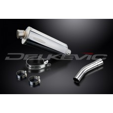 • This set includes - Delkevic silencer with a removable baffle, link pipe, strap, and clamps.