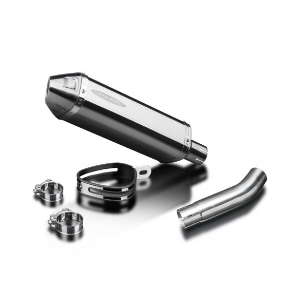 - This set includes - Delkevic silencer with a removable baffle, link pipe, clamps, and strap.