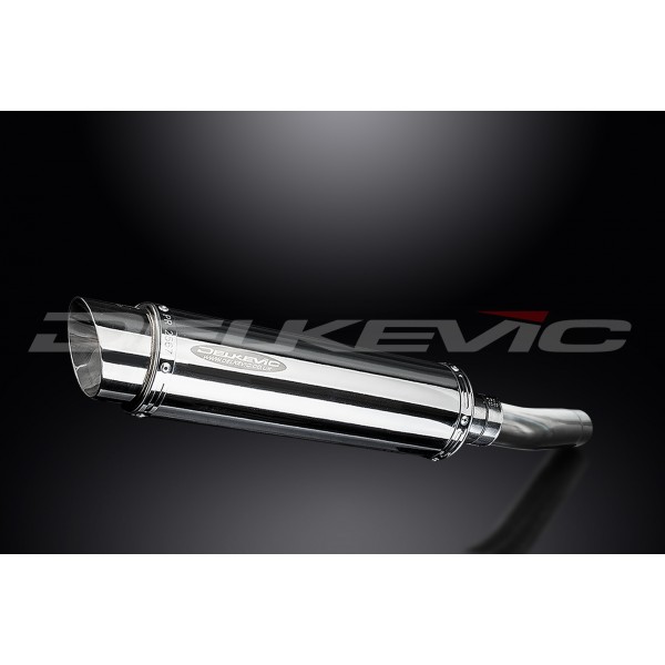 • This set includes - Delkevic silencer with a removable baffle, link pipe, clamps, and strap.