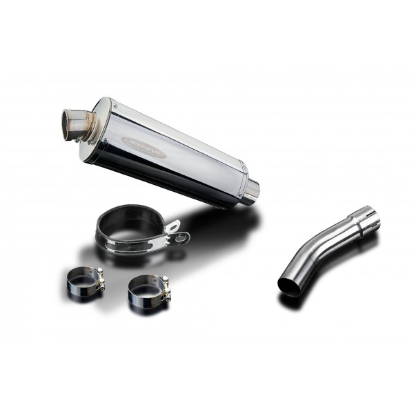 • This set includes - Delkevic silencer with a removable baffle, link pipe, strap, and clamps.